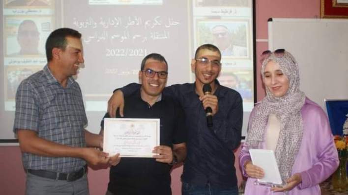 في جو مليء بالمشاعر الإنسانية والمحبة المتبادلة، وتكريسا لثقافة الاعتراف ومبدإ العرفان بالجميل، نظمت الأطر التربوية لثانوية يوسف بن تاشفين التأهيلية باولاد عبد الله مديرية الفقيه بن صالح، وبشراكة وتنسيق مع جمعية أمهات وآباء وأولياء أمور التلاميذ والتلميذات، صبيحة يوم الأربعاء 20 يونيو 2022، حفلا تكريميا للأساتذة المنتقلين، السيد مدير المؤسسة عبد اللطيف بوحوتى، والسيد الحارس العام سعيد الزيراني، والسادة الأساتذة مصطفى بوزراب وأبو بكر الفرتاحي ومحمد فرطيط وابراهيم بلحراث.